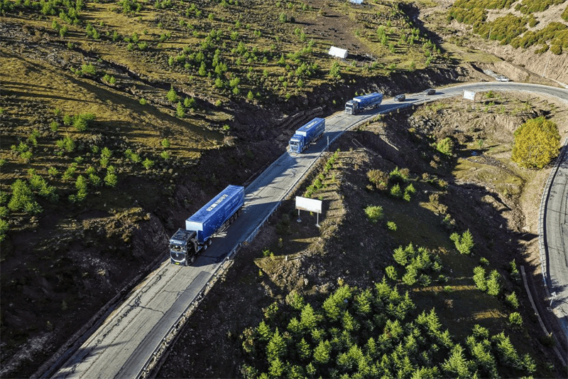 進入西南山區,歐曼混動重卡的優勢更加明顯。比如,從康定至理塘翻越四座超4000米山峰的測試中,高原缺氧環境下,傳統發動機易出現動力衰減。而歐曼混動重卡電機與發動機形成“雙擎驅動”:電機完全不受海拔影響,以2000N?m峰值轉矩精準補償發動機動力缺口,更好地解決高原爬坡動力不足問題。尤其在“怒江72拐”長下坡路段,“制動安全與能量回收”的雙重協同,既縮短29%制動距離保障安全,又為后續爬坡儲備能量,形成“安全-節能-動力”的良性循環,為全程26%的山區節油率筑牢根基,真正實現“全工況動力不衰減、全場景節油高效率”的核心突破。