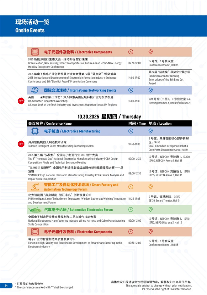 本屆展會不僅打造具身智能機(jī)器人及核心零部件拆解區(qū)、AI智能眼鏡拆解區(qū)、IGBT & SiC模塊封測工藝示范線、電子成品自動化包裝示范區(qū)、柔性生產(chǎn)制造及智能輸送主題展區(qū)等亮點展區(qū),還有40場會議活動覆蓋七大模塊,助力廣大觀眾一站式看盡電子制造黑科技!