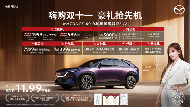 隨著EZ系列的熱銷,長安馬自達在新能源賽道穩步前行。11.98萬起的親民價格,配合全球級安全標準,讓“人馬一體”的駕控樂趣在電動時代煥發新生。