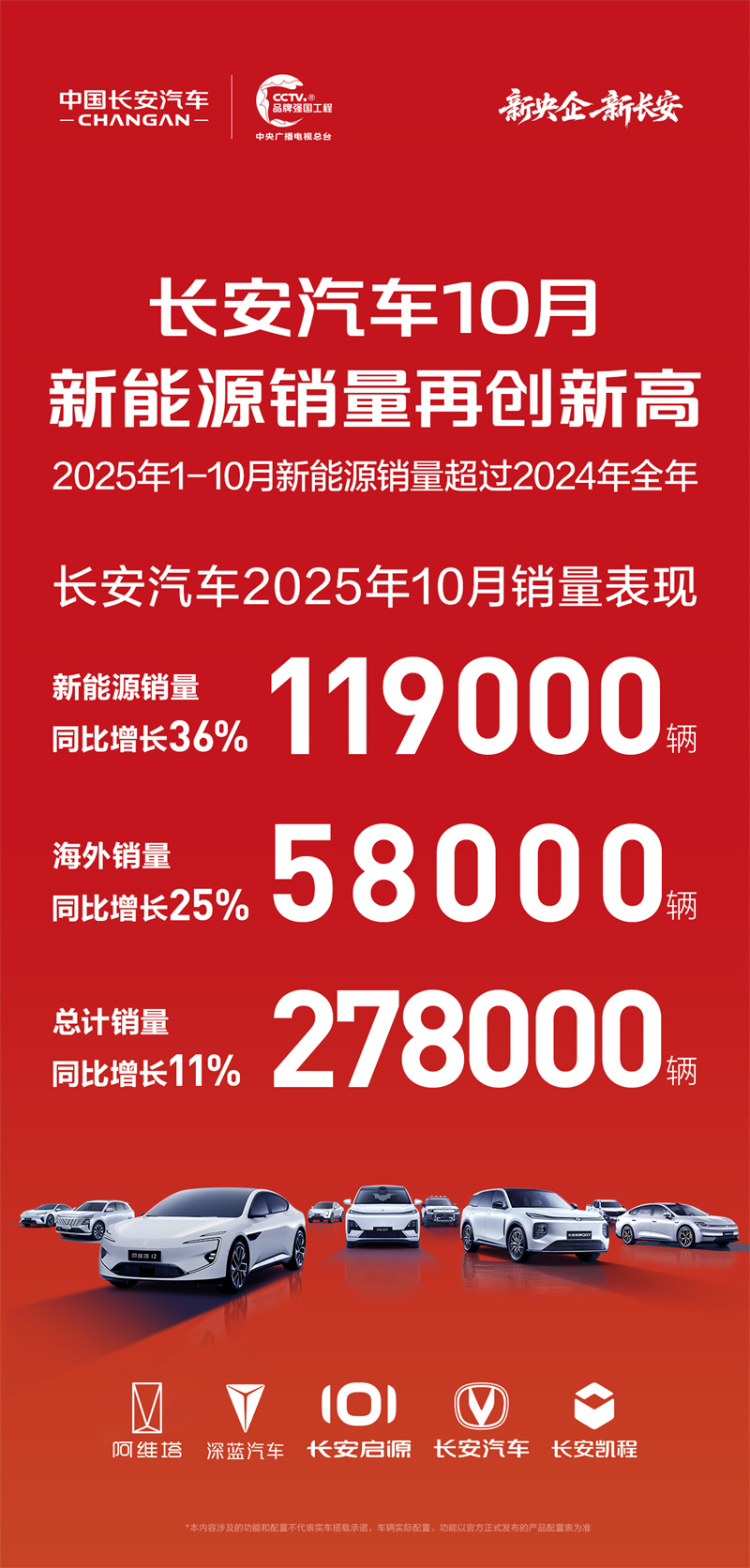 2025年車市“金九銀十”收官,在國內(nèi)乘用車市場同比下滑6%的背景下,長安汽車以一份逆勢增長的銷量答卷凸顯競爭韌性。10月,其總計銷量達27.8萬輛,同比增長11%;新能源銷量11.9萬輛,同比勁增36%;海外銷量5.8萬輛,同比增長25%。更值得關(guān)注的是,2025年1-10月新能源累計銷量已超過2024年全年,這份成績單的背后,是長安汽車在新能源轉(zhuǎn)型、全球化布局、品牌矩陣協(xié)同等多維度的深度發(fā)力。