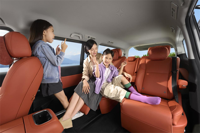 整車超過80項噪音及振動優化設計、前排雙層夾膠玻璃,營造出靜謐、舒適的駕乘環境。影院式座椅布局,7層材質人體工程座椅支持通風、加熱、按摩等功能,真正實現“15萬級價格30萬級享受”。
