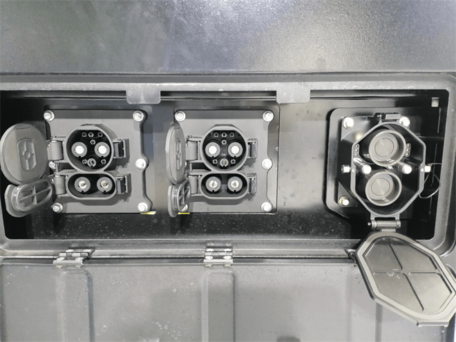兆瓦超充電池的2個充電插口+1個冷卻液插口