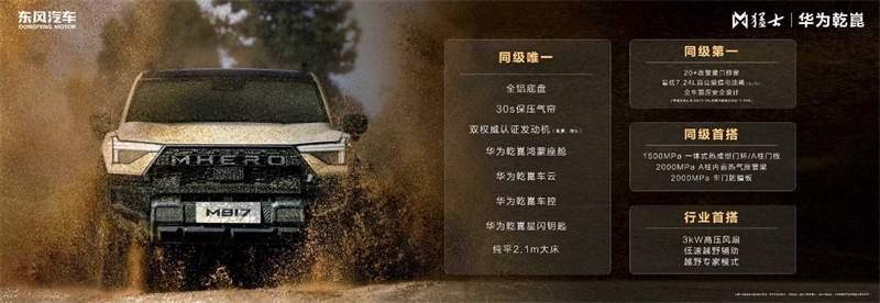 今年,猛士汽車與華為強強聯合,推出“豪華智能越野技術解決方案”,“全棧華為、全域通達、全維安全”三大技術集群硬核亮劍,以“智”與“野”的雙核基因,重構硬派越野價值標準,定義豪華智能越野全新品類。