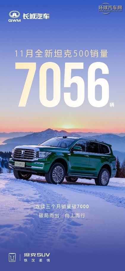 另一款主力車型全新坦克500則延續了穩健表現,11月銷量達7056輛,已連續3個月銷量破7000輛,持續引領30萬元以上非承載越野SUV市場。作為一款全場景智能豪華越野SUV,全新坦克500在硬派越野底色之上,加持全場景NOA、智慧座艙,以及冰箱彩電大沙發,以越野+智能+豪華三合一優勢,比傳統豪華品牌更智能,比同類競品越野更專業,比新勢力適用的場景更多,滿足了眾多家庭用戶“一車多用”的全場景需求。