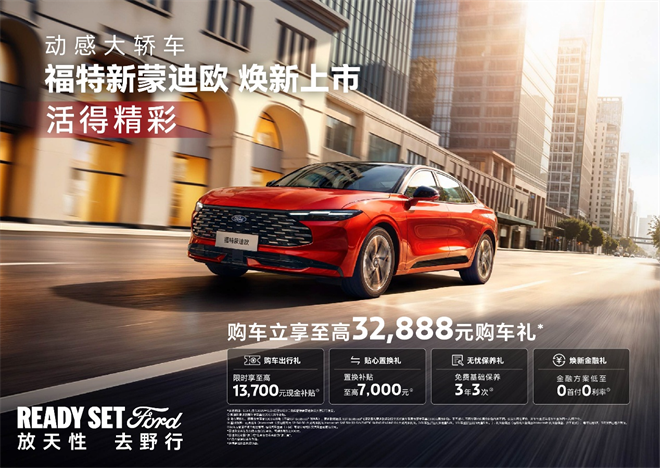 【2025年12月4日】福特新蒙迪歐正式上市,官方指導價14.98萬元起,更有多重尊享好禮同步發布。新車集福特全球技術實力于一身,定位“動感大轎車”,為追求駕駛樂趣與生活質感的都市精英,提供超越期待的出行選擇,助力用戶活得精彩。