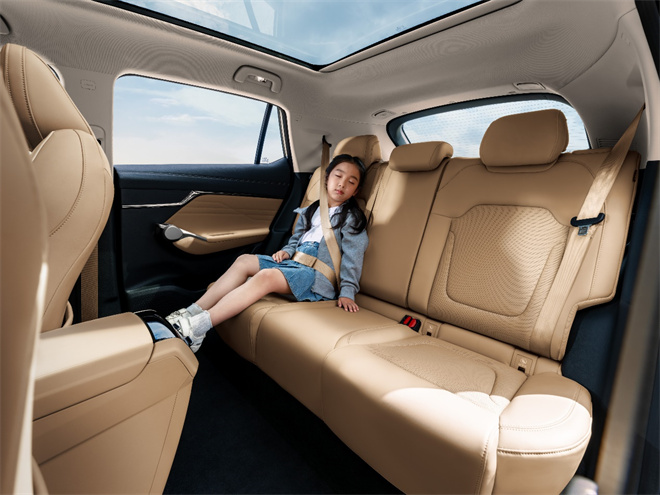 大空間: 車身長寬高4685mm*1901mm*1690mm,軸距2750mm ,后排純平通道,坐滿一家老小也不擠!后備廂常規(guī)容積638L,輕松裝下全家行李,后排一鍵放倒拓展至1586L,可變兩米大床房,也能容納更多裝備。