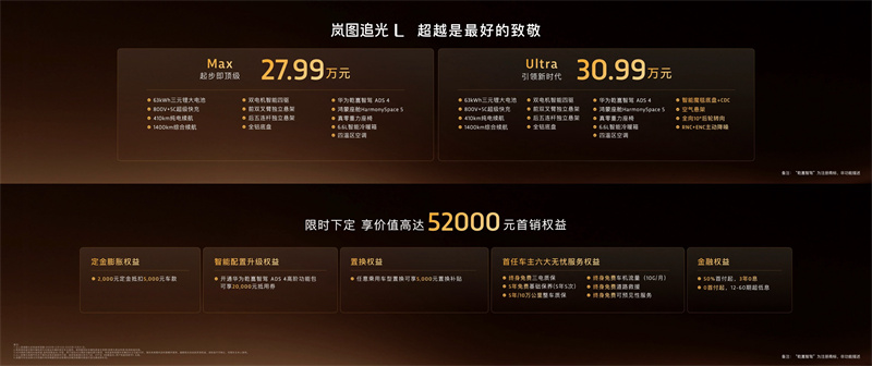 即日起,選購嵐圖追光L的用戶可享受價值高達5.2萬元的首銷權益。追光L的到來,不僅以領先的三電技術以及極寒環境下穩定快充的硬核實力破解了北方用戶冬季用車焦慮,更在智能化、底盤操控等核心維度,打造了旗艦級體驗,用技術重塑豪華標桿,為追求真正價值的用戶,提供了一份超越期待的答案。