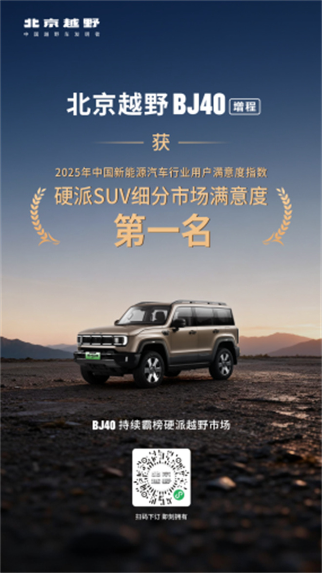 不難看出,BJ40增程完美地平衡了越野的可靠性、長(zhǎng)途穿越的續(xù)航性、以及城市日常的經(jīng)濟(jì)性三大需求,是名副其實(shí)的全能王。憑借硬核實(shí)力,12月3日,在中國質(zhì)量協(xié)會(huì)2025年NEV-CACSI中國新能源汽車行業(yè)用戶滿意度指數(shù)測(cè)評(píng)中,BJ40增程獲得硬派SUV細(xì)分市場(chǎng)滿意度第一,再次展現(xiàn)品質(zhì)實(shí)力。