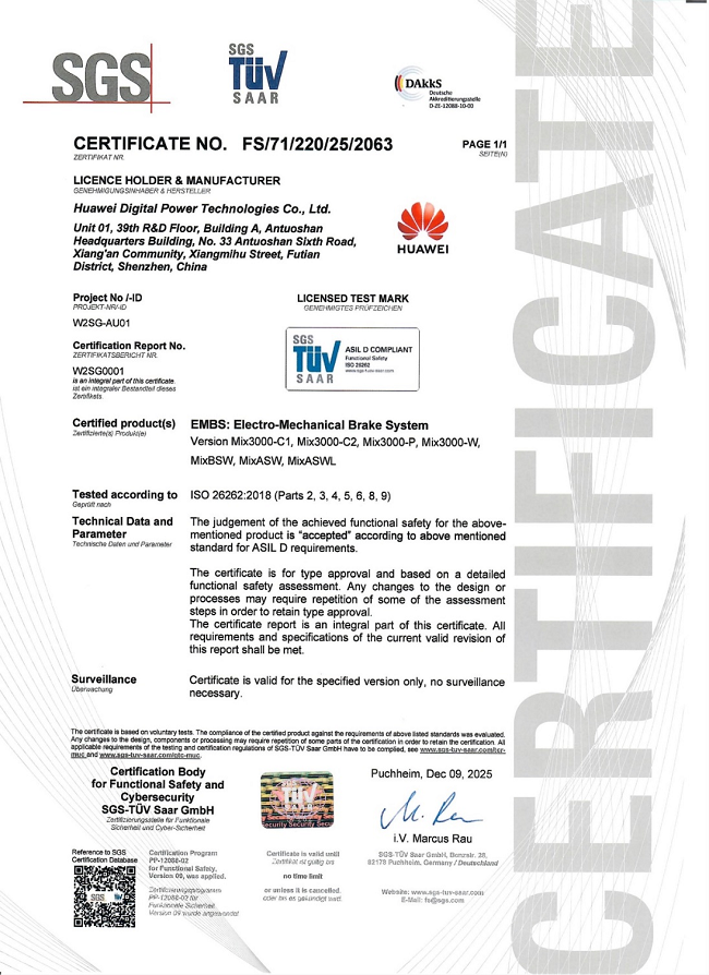SGS向華為DriveONE融合驅(qū)動(dòng)產(chǎn)品頒發(fā)DAkkS ASIL D功能安全證書