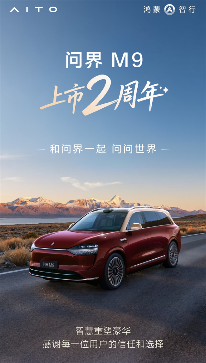 站在上市兩周年的新起點,問界M9將持續深化“智慧重塑豪華”理念,聚焦“全心全意為用戶服務”的宗旨,不斷優化“科技車皇”實力,用“傳統豪華+科技豪華”的“新豪華”,為用戶帶來超越期待的智慧出行體驗,持續書寫屬于中國高端智造的新篇章。