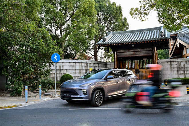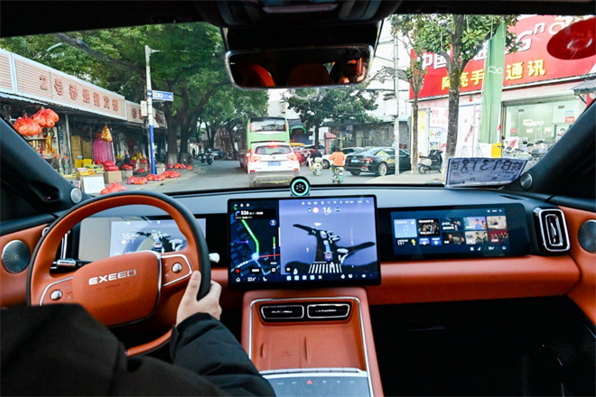 當前方一輛電瓶車突然變道,坐在駕駛位的體驗者還沒來得及反應,車輛已經極其線性地收油、微調方向,防御性駕駛表現比人類的第六感都要略勝一籌,甚至在經過一個沒有明確車道線的鄉鎮小路路口時,它依然能從容應對,不需要高精地圖也能自己看路。這種無圖智駕的底氣,讓用戶可以在復雜的車流中,把腳真正地放在休息區,享受片刻的松弛。