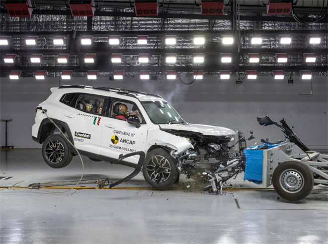 在ANCAP碰撞測試中,哈弗大狗PLUS海外版的表現堪稱穩定:正面偏移(MPDB)測試中,前排乘員各部位保護效果良好。側面碰撞測試直接斬獲滿分;更嚴苛的斜桿測試中,駕駛員胸部防護充分有效;就連新增的水下逃生測試,車門也能在最短時間內保持開啟,從容應對涉水險境。