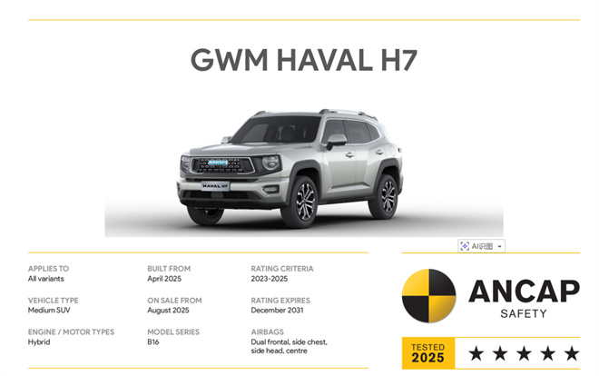 近日,據澳大利亞新車安全評價組織(以下簡稱“ANCAP”)公布的中型SUV安全測試結果顯示,哈弗大狗PLUS海外版(即哈弗H7)成功斬獲五星安全評級。這一成績不僅彰顯了哈弗大狗PLUS卓越的安全性能,更印證了中國品牌在造車工藝與安全技術領域的進階實力。值得關注的是,這款經受住國際嚴苛標準考驗的車型,與國內在售的哈弗大狗PLUS品質同源,以實打實的全球安全水準,印證了哈弗大狗PLUS的泛越野家庭中型SUV的硬核品質。