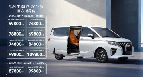 近日,2026款銳勝王牌M7正式上市,新車在秉承核心優勢的基礎上,精準錨定用戶核心需求,完成全維度煥新升級。繼純電版上市之后,燃油、CNG兩種動力車型也于12月31日重磅上市,售價區間5.98-10.98萬元。此次升級不僅讓新款車型的產品實力全面進階,更實現了對不同消費群體需求的精準滿足,為每一位用戶提供更具誠意的優質之選。