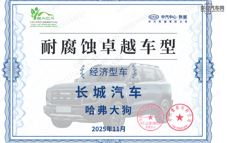 在銷量高歌猛進的同時,哈弗大狗品類也在權威評選中屢獲殊榮,贏得行業與用戶的雙重認可。哈弗大狗先后榮膺2025年中國燃油汽車用戶滿意度CACSI測評10-15萬緊湊型SUV第一名,以及中汽中心數據測評經濟車型“耐腐蝕卓越車型”獎項。