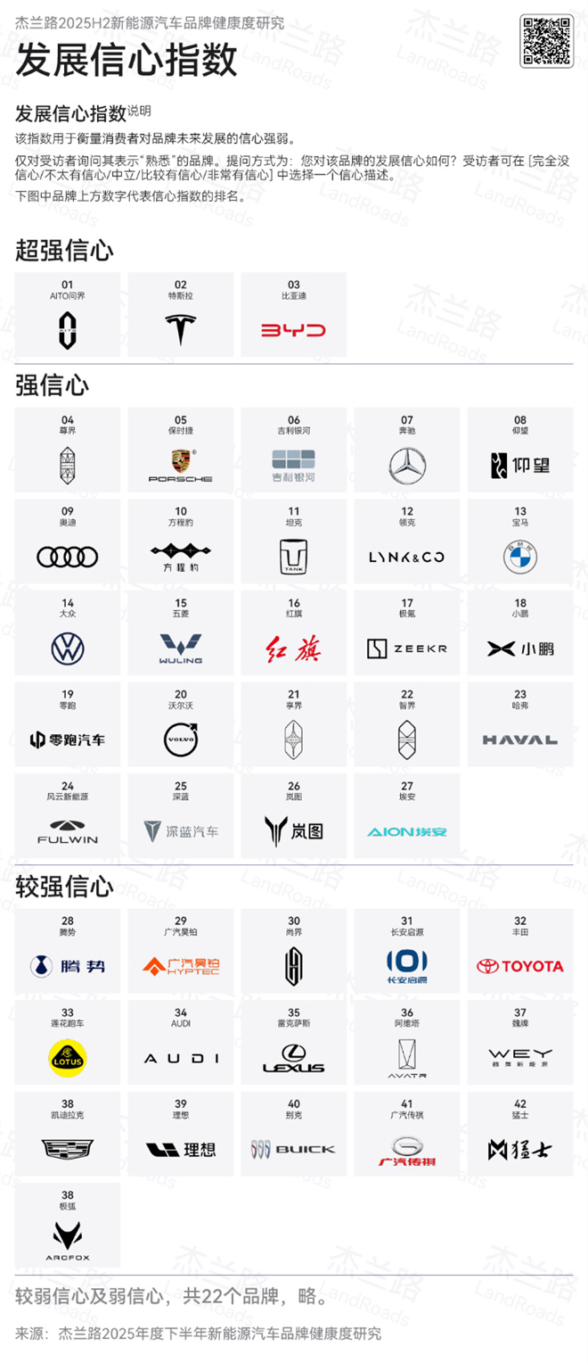 不僅如此,在品牌發展方面,問界更是高端汽車市場中第一個、也是唯一一個連續三次獲得品牌發展信心指數第一的品牌。這一成就,清晰反映出市場對問界堅實的技術根基、未來發展前景以及長期價值充滿信心。