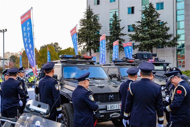 1月10日中國人民警察節當天,猛士917處突阻停車正式交付昆明市公安局特巡警支隊云豹突擊大隊。作為全國十支“國家專業反恐突擊隊”之一,這支有著“云嶺尖兵”美譽、23年處置重大案件“零差錯”的鐵血勁旅,迎來猛士917處突阻停車這員硬核“新戰友”。這不僅是警用裝備列裝升級的關鍵舉措,為云南復雜地形處突任務注入更強戰斗力;更是猛士汽車以硬核裝備,為平安守護賦能升級、再上新臺階。