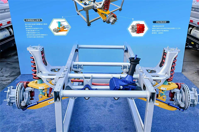 在操控與安全方面,產(chǎn)品首次采用雙橫臂獨(dú)立懸架與P-EPS電動(dòng)助力轉(zhuǎn)向系統(tǒng),兼顧操控靈活性與行駛穩(wěn)定性。行業(yè)首創(chuàng)的雙缸制動(dòng)鉗,提升了山區(qū)長(zhǎng)下坡等復(fù)雜路況下的制動(dòng)效能。配合直通式高強(qiáng)鋼大梁、加強(qiáng)型大速比后橋和5+2加強(qiáng)型板簧,提升起步動(dòng)力性的同時(shí),確保了重載工況下的車身強(qiáng)度與貨物安全。此外,車輛配備的ESC+TCS+HAS+HBA+EPB+Autohold+AEB等主動(dòng)安全配置和照射距離較普通微卡提升60%的LED大燈,全方位、全天候?yàn)榭ㄓ驯q{護(hù)航。