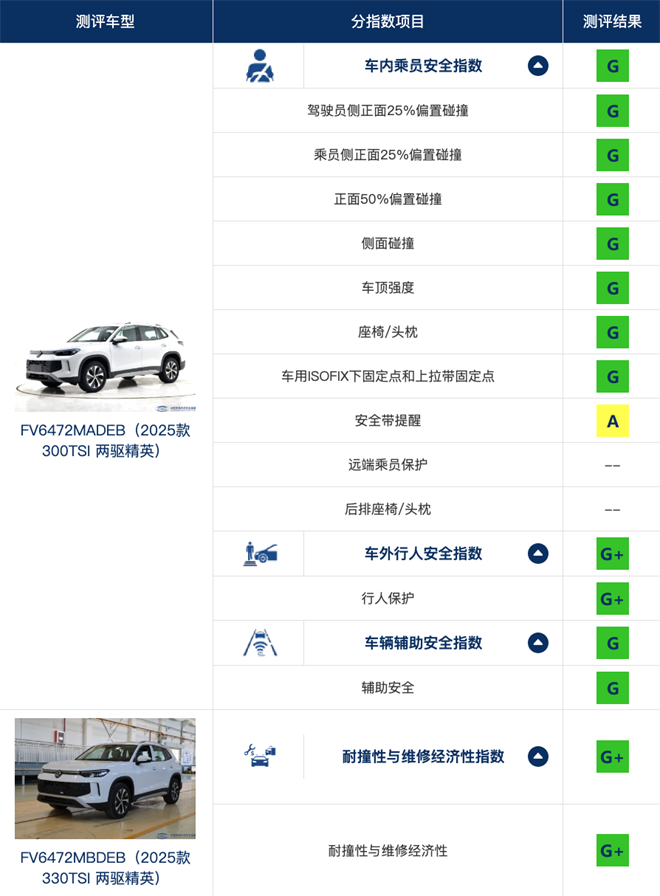 值得一提的是,在“耐撞性與維修經濟性”這一嚴苛評選中,全新探岳L憑借車身結構強度與易維修保養的優勢榮獲G+評級,這也是C-IASI測試自舉辦以來,首次有參選車型在該項目評選中獲評G+。這不僅是對全新探岳L產品安全實力的高度認可,更是一汽-大眾大眾品牌長期恪守“以客戶為中心的長期主義和利他主義”理念收獲的成果。