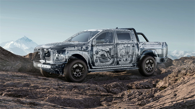 對于需要頻繁承載重物的用戶而言,車身結(jié)構(gòu)是可靠性的根本。威麟R08 EV采用非承載式車身,搭載獨立的梯形車架。相較于由乘用車底盤衍生的承載式車身,其核心優(yōu)勢在于: