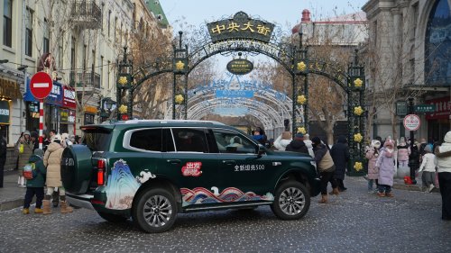 照片在網絡上不斷傳遞發酵后,#全新坦克500要上春晚了#、#哈爾濱偶遇春晚用車全新坦克500#等話題,迅速登上各大社交平臺熱搜榜單。在中央大街、中華巴洛克、索菲亞大教堂、冰雪大世界等城市地標,不少市民與游客都捕捉到坦克500穿梭的身影,車身工筆山水祥云的圖案,給這座充滿文旅熱度的冰雪之城,更添一份流動的詩意。