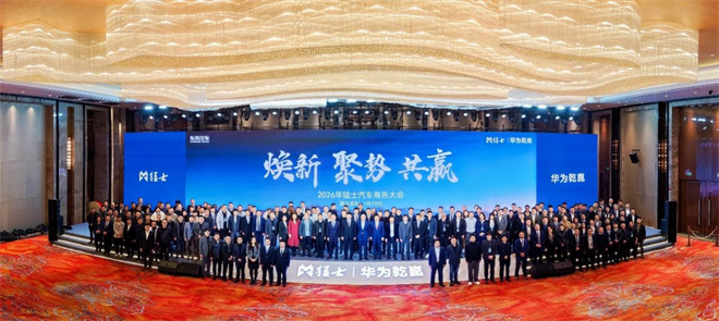 1月29日,以“煥新 聚勢 共贏”為主題的2026年猛士汽車商務大會在湖北襄陽隆重召開。東風汽車集團有限公司黨委常委、副總經理周鋒,猛士汽車CEO萬良渝,以及來自全國的數百名猛士汽車經銷商、供應商、服務商及華為代表、行業嘉賓齊聚一堂,共同回顧猛士汽車跨越式發展成果,進一步堅定了攜手深耕智能越野賽道、合力贏戰市場的信心與決心。