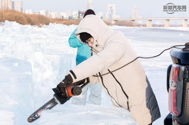 在這場傳統(tǒng)與現(xiàn)代的交匯中,長城炮不僅是見證者,更是參與者。2026款越野炮、V6火炮、山海炮Hi4-T等車型化身“現(xiàn)代工匠伙伴”:山海炮Hi4-T的外放電功能為電動冰鋸、冰刀持續(xù)供能,利落切開厚重冰層;原廠絞盤如機(jī)械臂膀,輕松拖拽數(shù)百公斤冰料;寬敞的后貨箱成為移動原料庫,高效支撐冰雕的創(chuàng)作流轉(zhuǎn)。