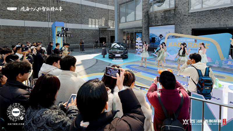 巡游終點直抵IN77商圈,一場精心策劃的快閃活動直接把氛圍拉滿。融入賽事涂裝的帝豪展車、電子國風女團助陣,現場人氣爆棚,完美演繹了“運動+汽車”的潮流碰撞。