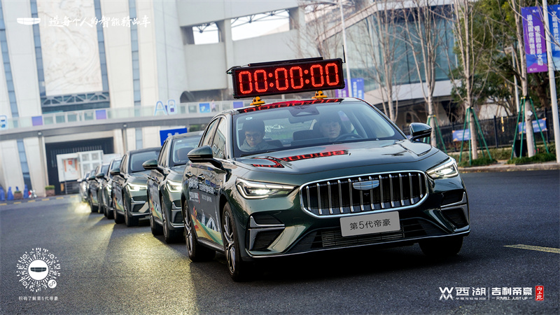 現場最吸睛的,莫過于由數十輛第5代帝豪組成的保障車隊,浩浩蕩蕩開啟西湖巡游。車隊穿行白堤、北山街,將“只為向上”的跑者精神與湖光山色融為一體,瞬間成為春日杭城最拉風的流動風景線,路人紛紛打卡。