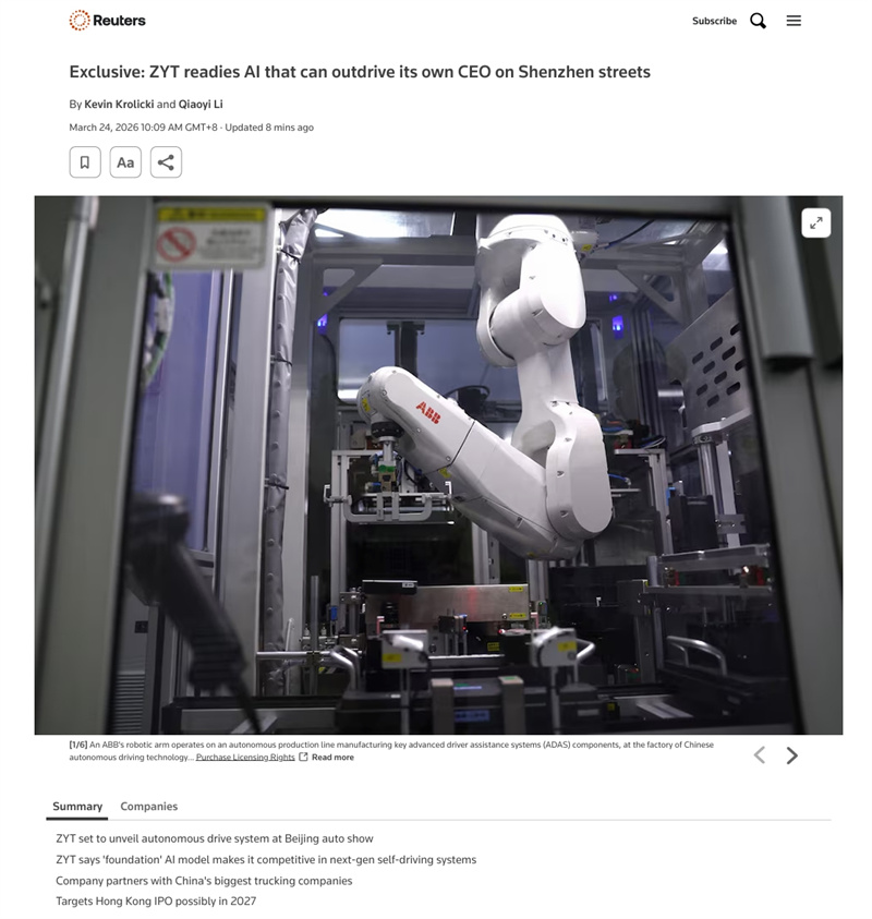 近日,卓馭科技CEO沈劭劼接受路透社獨家專訪,披露公司新一代架構原生多模態基礎模型的核心進展,并確認將于2026年4月北京車展正式發布該技術,集中展示“移動智能基座”戰略成果。此次專訪獲國際權威媒體聚焦,不僅印證了卓馭在智駕領域的技術硬實力,更標志著中國智駕供應商正從“技術跟隨”向“標準制定”跨越,為全球智駕行業注入中國力量。