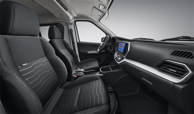 底盤也夠硬。前麥弗遜獨立懸架+后5片漸變式鋼板彈簧,總厚度53mm,還帶橫向穩定桿。重載起步、爬坡過坎,穩得住,不晃。3H高剛性車架+籠式高強度車身,皮實耐造,越用越敢用。座椅布局給了2/5/6/7座多種選擇,純拉貨、客貨混用,或者兼顧家用,都能靈活切換。一臺車把生意和生活都兜住了。