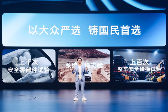 用料層面,整車采用高比例高強(qiáng)度鋼打造籠式車身,保障出行安全;內(nèi)飾選用環(huán)保低散發(fā)材料,兼顧健康與質(zhì)感。制造工藝上,搭載9100噸伺服壓機(jī)線,激光焊接里程近15米,空腔灌蠟實(shí)現(xiàn)12年長效防腐,多項(xiàng)工藝引領(lǐng)行業(yè)標(biāo)準(zhǔn)。產(chǎn)品驗(yàn)證環(huán)節(jié),車門10萬次疲勞測(cè)試、超千萬公里整車耐久、動(dòng)力電池300余項(xiàng)超國標(biāo)安全測(cè)試,用極致嚴(yán)苛鑄就可靠品質(zhì)。