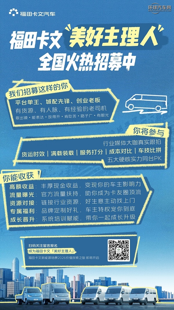 從戰(zhàn)略規(guī)劃到產(chǎn)品落地,從品牌發(fā)聲到用戶共創(chuàng),福田卡文正穩(wěn)步推進場景化價值探索。未來,隨著更多“美好主理人”加入、區(qū)域終端線下活動落地,品牌將持續(xù)深耕新能源商用車場景價值,不斷優(yōu)化產(chǎn)品與服務(wù),引領(lǐng)行業(yè)向高效、智能、美好的方向升級,與廣大用戶攜手共赴物流新未來。
