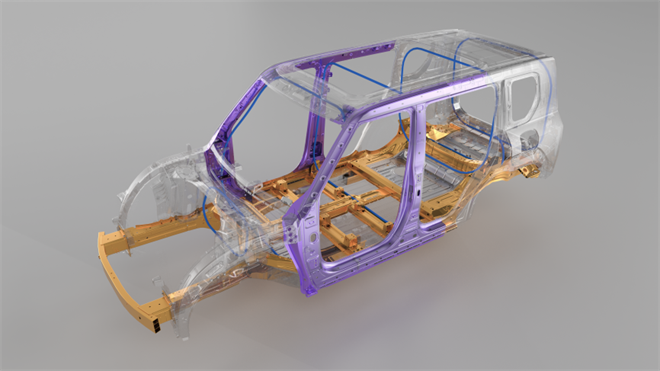 基于此,廣汽創新性地提出了“嵌入式大梁+多元環籠”的車身架構。該技術靈感來源于中國古代轎子的堅固轎架,將傳統非承載式車身的獨立大梁,創新性地嵌入承載式車身主體框架中,真正實現了“車身即車架,車架即車身”的一體融合,該設計打破了“強悍越野必須依賴獨立大梁”的行業傳統認知。