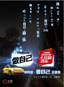 2014年8月,大眾進(jìn)口汽車甲殼蟲冠名(季度)《土豆最音樂》,成為土豆?fàn)I銷合作人,并同步推出80后“TheBeetle做自己”主題季。在“TheBeetle做自己”主題季中,由80后網(wǎng)友合力創(chuàng)作、14位80后真人講述真事,甲殼蟲80后“心聲”M ...