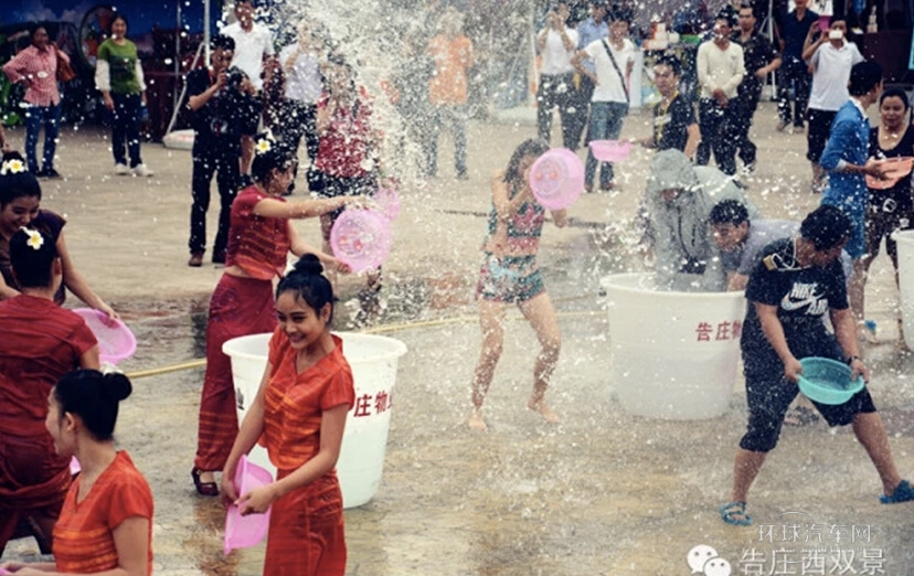 緊接著,唯有潑水節才有的潑水狂歡下午兩點在告莊西雙景大金塔廣場開始,傣家姑娘的熱情和一桶一桶清水向你潑來……