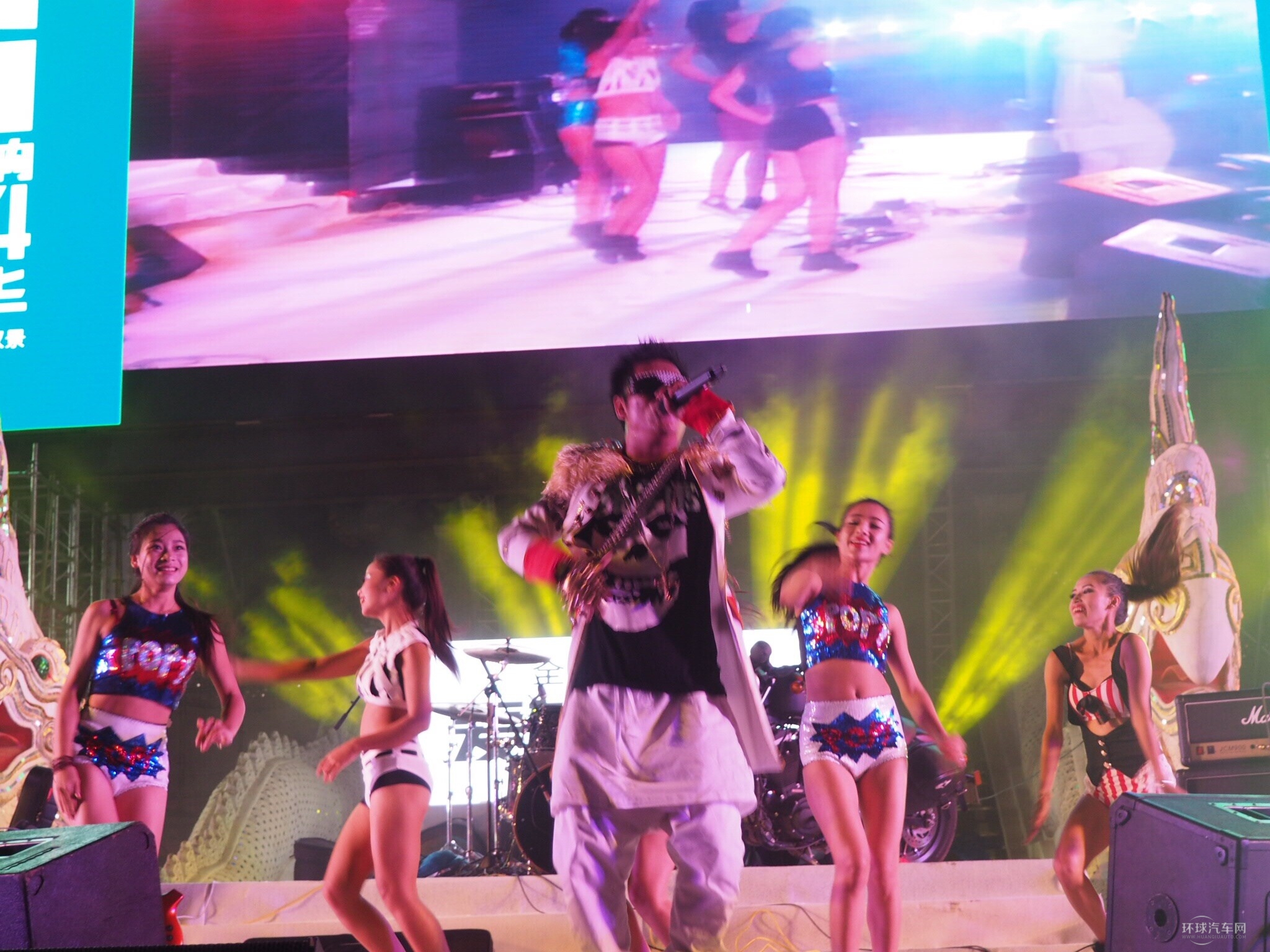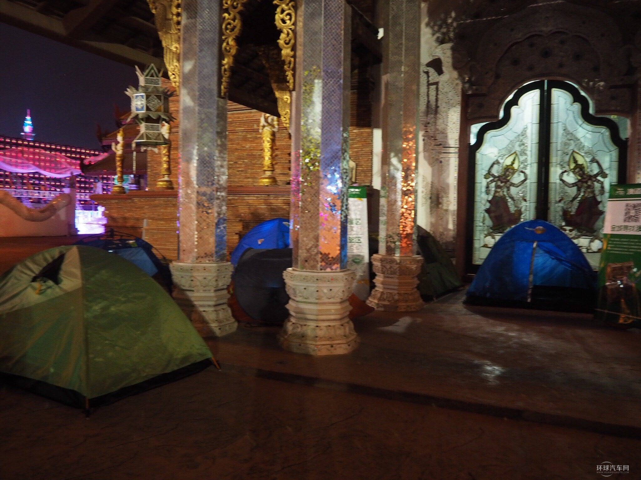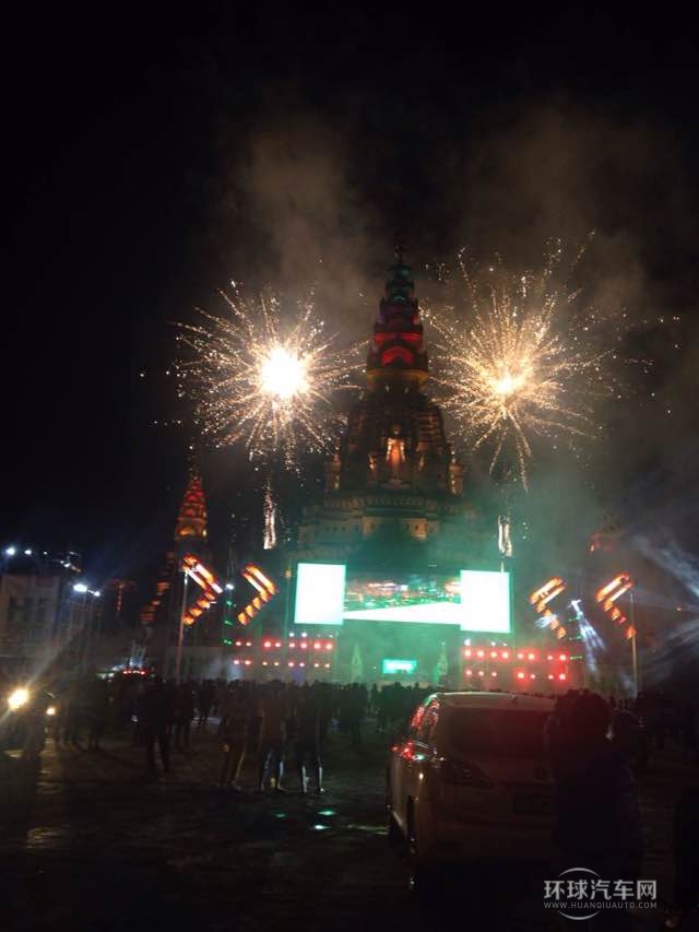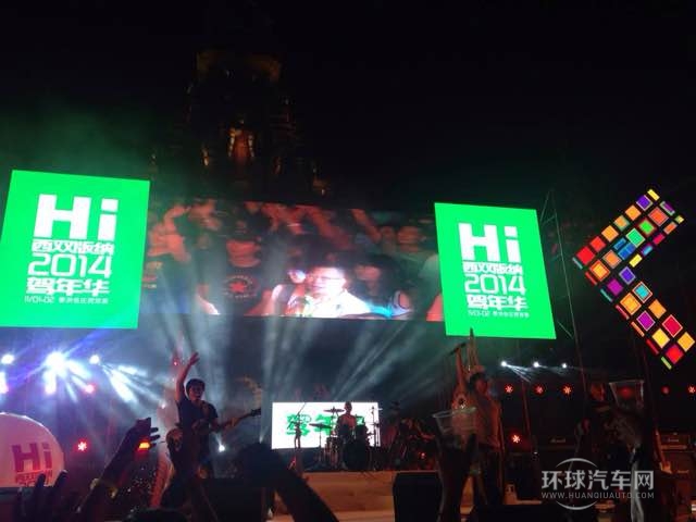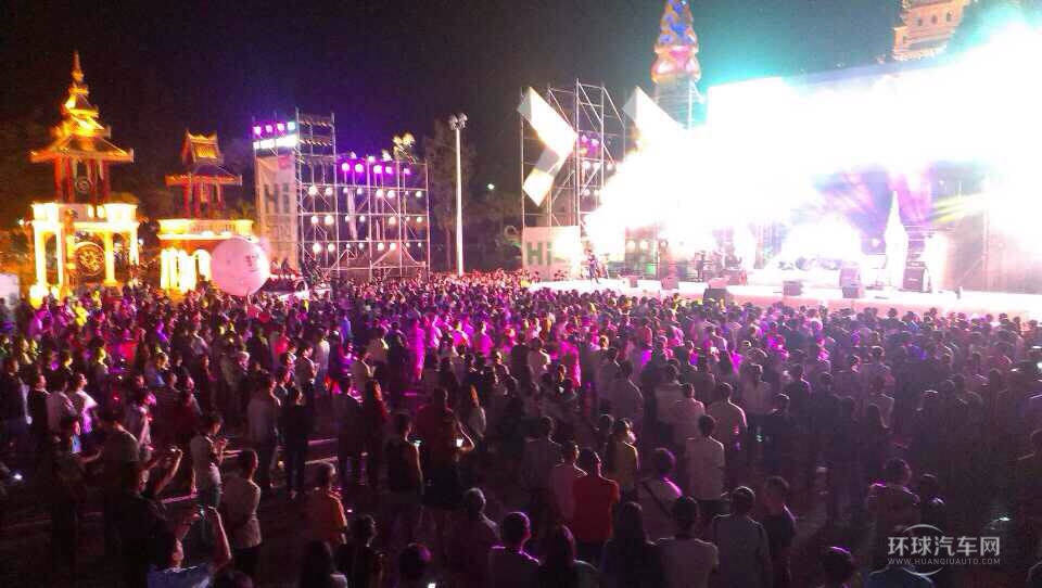 入夜時分,大金塔廣場金碧輝煌、燈火通明。在大金塔前架起的面積近200平米的LED大舞臺成為全場注目的焦點,一場通宵汽車音樂晚會真正引爆駕年華盛會的最高潮。
