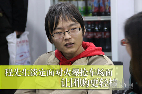 “我是看標(biāo)致301的。之前自己在網(wǎng)上看了看優(yōu)惠,感覺還是很有水分的,就去店里逛了逛,可是覺得沒太大的優(yōu)惠價格。這期的價格是我看車兩個月以來力度最大的,我今天就打算訂車。這期團購價格我很滿意,我之前就是聽朋友介紹的團車網(wǎng),他在你們團車網(wǎng)買的朗動,告訴我價格非常實惠,這次來參加果然同他說的一樣。不過,你看現(xiàn)在圍著銷售簽單的人那么多,我先不去湊熱鬧,省的被擠。”程先生說。