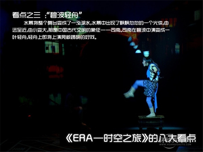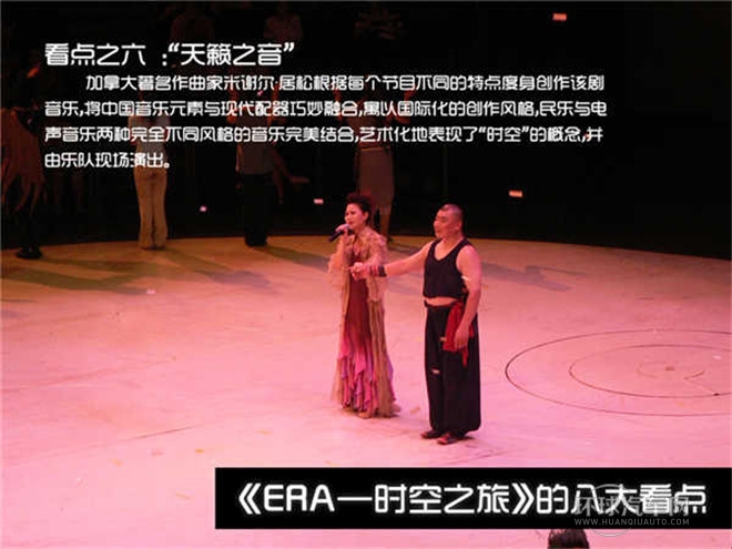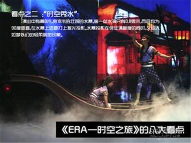“ERA時空之旅”融雜技、舞蹈、戲劇、音樂和世界一流多媒體技術于一體,中國元素、國際制作,打造全新舞臺藝術樣式,原創音樂、現場演奏、電子投影、數字舞臺、超大水幕、巨型鏡墻,如夢似幻……感人、神奇、震撼,給人以超凡享受,堪稱“中國娛樂第一秀”。
