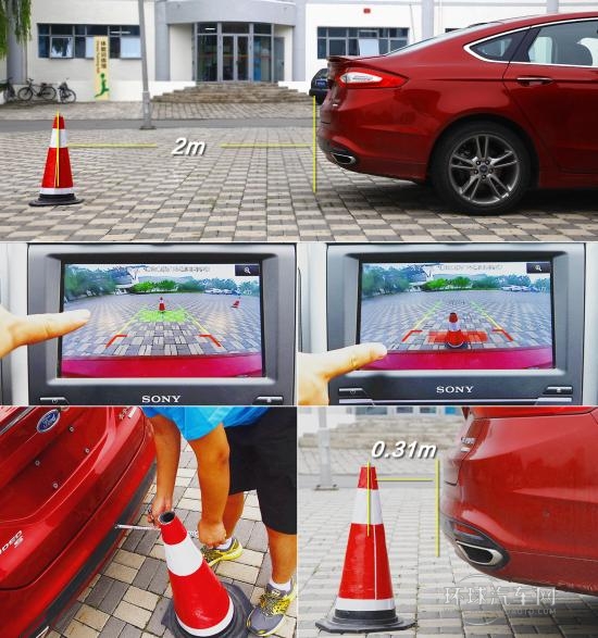針對大樁桶的表現就好得多了:距離2米雷達提示開始響起,隨著距離的拉近雷達提示聲逐漸密集,到0.31米時雷達長響。而且中控液晶屏上會有提示倒車時障礙物的威脅情況。