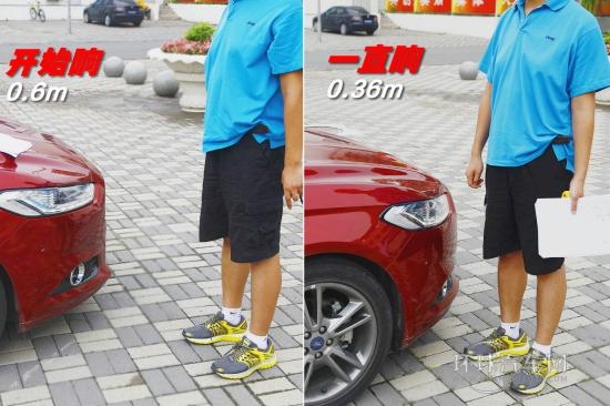 體驗人員站在車輛的側前方,一條腿站在車輛一側車輪的形式軌跡上——車輛如果一直直行,肯定會撞上體驗人,而這個位置駕駛者從前擋風看又不太好判斷。