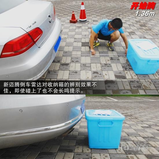 但是在高度僅有30cm的小樁桶面前,這些配置依然是浮云,不會(huì)有提示音——即使是撞上了。而且也不能準(zhǔn)確檢測(cè)出和收納箱的距離,即使倒車碰到了也依然不會(huì)長(zhǎng)鳴倒車提示。