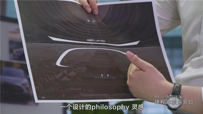 在“純粹致美探索日”活動直播中有個橋段相信都令人印象深刻,通過BEIJING汽車設計總監Frank Wu講述,為我們展示了“大都致美”設計靈感的起源,以及BEIJING-X7在紙上的第一筆由來。