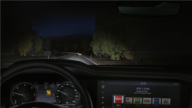 途銳是第一款配備Night Vision夜視系統的大眾汽車品牌車型。該系統的熱成像攝像機(紅外攝像機)能夠捕捉、記錄生物發出的紅外輻射,使監測到的