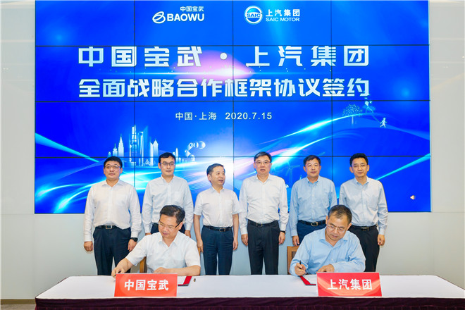 (2020年7月15日,上海)今天,上海汽車集團股份有限公司(以下簡稱“上汽集團”)與中國寶武鋼鐵集團有限公司(以下簡稱“中國寶武”)在上海正式簽署全面戰略合作框架協議,雙方將在以往長期成功合作的基礎上,瞄準氫能利用、汽車綜合用材、智慧供應鏈、產業金融等具體方向,拓寬合作領域、提升合作水平,實現互利共贏、協同發展。