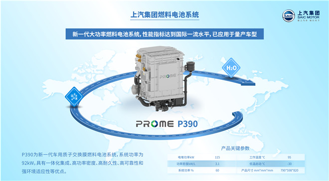 2018年6月,上汽集團成立上海捷氫科技有限公司,整合燃料電池領域技術人才等核心資源,加快自主核心技術研發進程,并為行業提供燃料電池相關產品及服務。全球首款燃料電池MPV車型——上汽大通MAXUS EUNIQ 7燃料電池車,搭載捷氫科技第三代燃料電池系統PROME P390,并在國內率先應用70MPa氫瓶供氫系統,與國內普遍使用的35MPa氫瓶相比,容量更大、質量更輕。EUNIQ 7燃料電池車,電堆功率為115kW,體積功率密度為3.1kW/L,關鍵指標達到國際一流水平; -30℃低溫下實現正常運行,成功克服燃料電池車低溫冷啟動的行業難題;5分鐘內就能完成加氫,綜合續航里程達到605公里。目前,捷氫科技第四代燃料電池電堆和系統研發正在快速推進,瞄準國際領先水平。