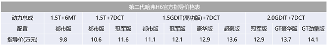 第二代哈弗H6在配置上大幅升級,相比全新哈弗H6,都市版車型配置增加了哈弗智能生活云Hi-Life系統、四門一鍵升降等多項配置;冠軍版及GT車型還新增N95空調濾芯、AQS空氣質量監測、負離子凈化器等空凈配置。