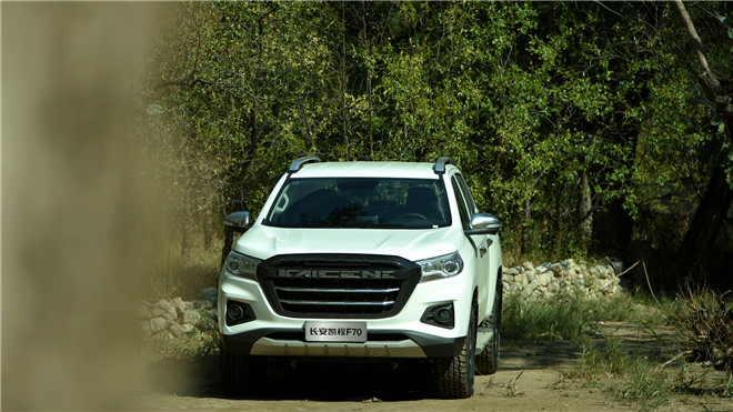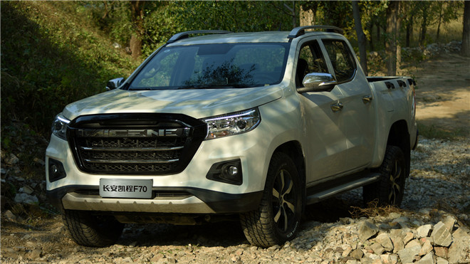 拿到車后,首先是原創(chuàng)度極高的大氣外觀給我留下了不錯(cuò)的第一印象。現(xiàn)如今山寨外觀的設(shè)計(jì)思路早已被用戶所唾棄,長(zhǎng)安近一兩年也在外觀設(shè)計(jì)上展露出了超越其他國(guó)產(chǎn)品牌的出色原創(chuàng)能力。從網(wǎng)紅SUV長(zhǎng)安CS75 PLUS,到讓無(wú)數(shù)人眼前一亮的長(zhǎng)安UNI-T,長(zhǎng)安品牌高水準(zhǔn)的設(shè)計(jì)能力再度出現(xiàn)在皮卡車型上。大尺寸的熏黑中網(wǎng)配合KAICHENG字樣,讓這臺(tái)車營(yíng)造出一種“不怒自威”的氣勢(shì)。優(yōu)秀的原創(chuàng)外觀設(shè)計(jì),自然也是中歐合作開(kāi)發(fā)世界級(jí)品質(zhì)大皮卡所必備的基本素養(yǎng)。長(zhǎng)安凱程F70作為長(zhǎng)安汽車和歐洲第一商用車品牌PSA(標(biāo)致雪鐵龍)共同研發(fā)的中歐合作全球新一代寬體大皮卡,在這樣的開(kāi)發(fā)背景下,究竟還有哪些過(guò)人之處,待我在試駕過(guò)程中一一發(fā)掘。
