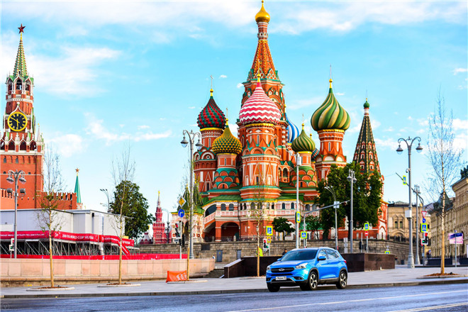 圖為奇瑞中歐班列、奇瑞汽車在俄羅斯