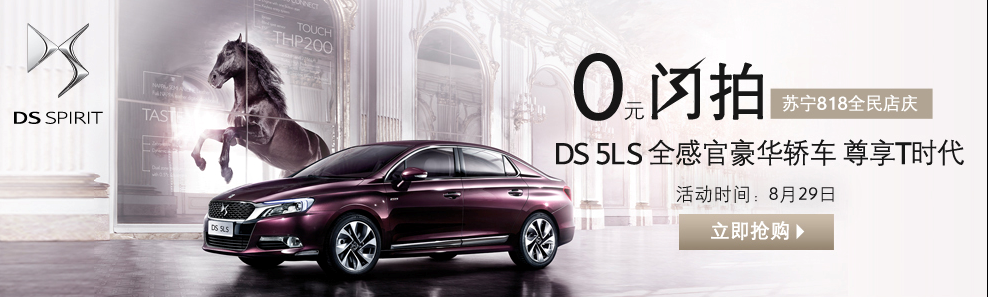 作為目前國內Z具規模及影響力的電商平臺之一,此次蘇寧易購舉辦的818蘇寧大促活動將集中眾多知名品牌的優質產品,而DS品牌作為中國豪車市場的新生力量,也將在此次購物節上為廣大消費者帶來DSZ新的兩款國產車型產品,分別是一臺THP160 豪華版2014款DS 5和一臺THP160 豪華版DS 5LS。屆時,這兩款正在熱銷的DS車型將在蘇寧易購818購物節期間,通過閃拍的形式銷售,而網拍價格更是比官方指導價格優惠了20%,為廣大消費者帶來更超值優惠的購車價格。